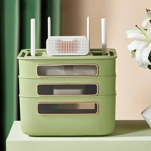 Pokud plánujete umístit router do speciálního organizéru, nemusíte se starat o maskování vodičů. V ozdobných krabičkách už je pro ně místo.