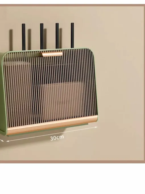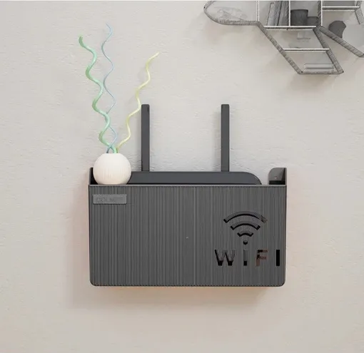 Dvě další možnosti montáže na stěnu pro router, ale kompaktnější. Miniaturní plastové nebo dřevěné organizéry, které lze namontovat na malou plochu a v libovolné výšce.